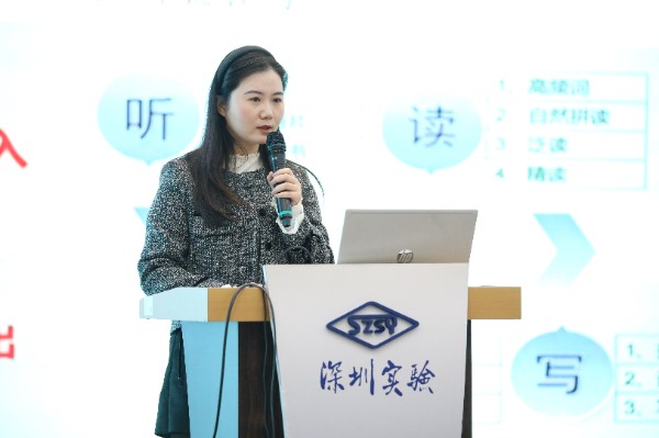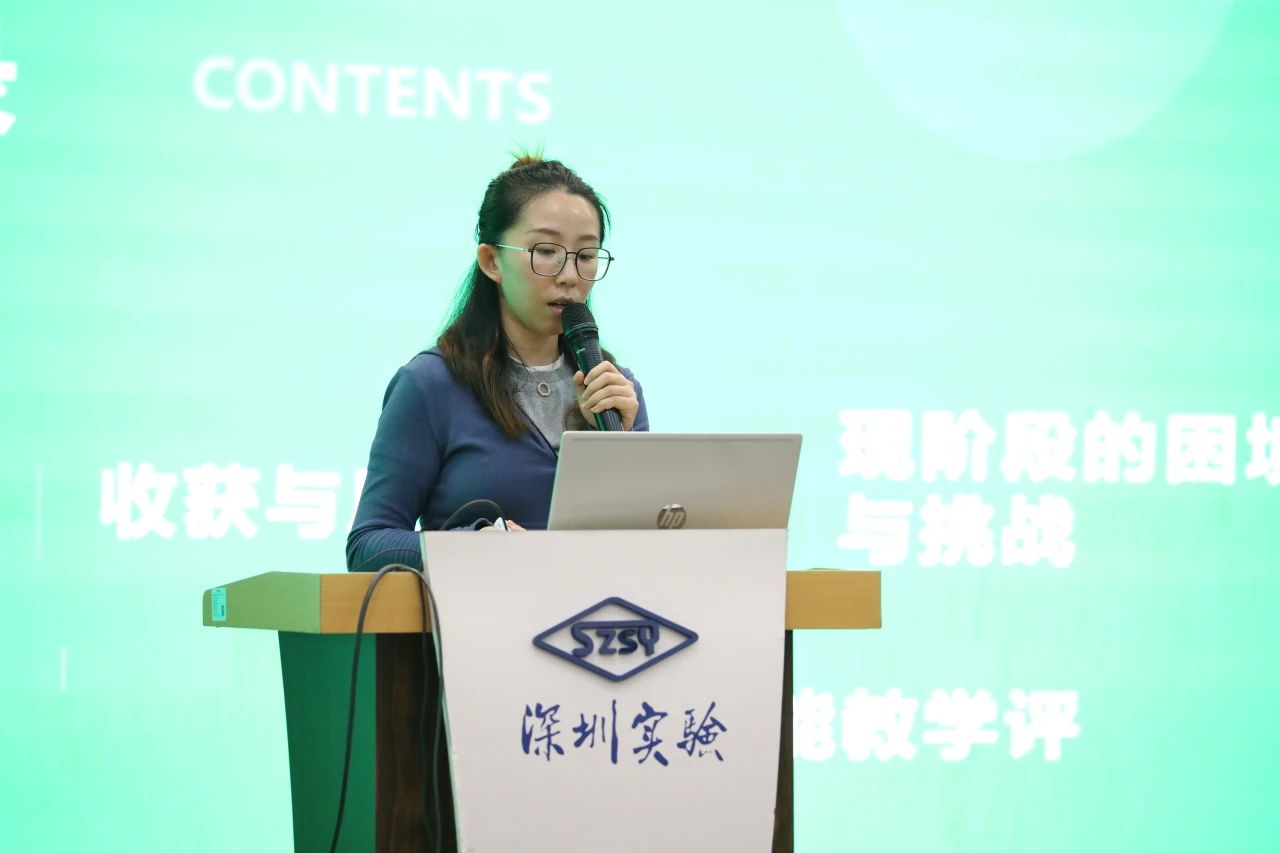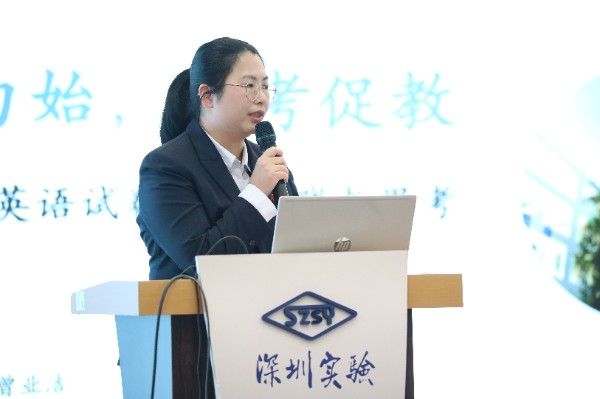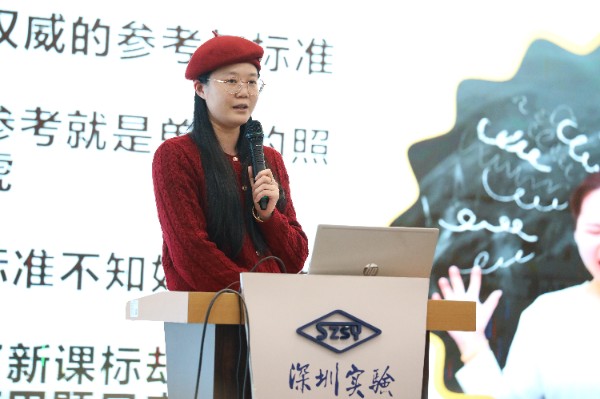深圳实验学校坂田部小学的孟杉老师提出,要从知识本位转向素养导向,采用项目式、探索式学习等教学方法,让学生在自主学习和合作学习中提升学生语言运用和思维能力。深圳高级中学北校区的赵可老师深入浅出地讲解了英语课程各阶段学业质量标准,强调学生学习能力应逐步提升。深圳高级中学东校区的卞怡老师结合教学经验,提出学生应成为评价的参与者,根据学业质量标准反推教学,命题和作业形式要多元化,融入真实情境。