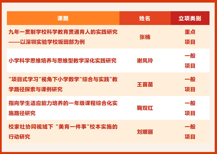 在广东省教育科学规划2026年度中小学教师教育科研能力提升计划项目申报评审中,坂田部共有1个重点课题和4个一般课题获得省级课题立项,祝贺立项团队!