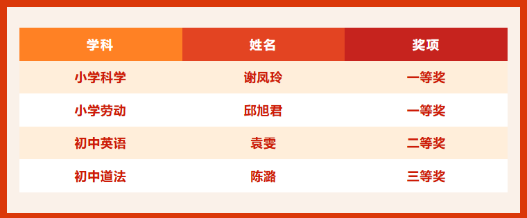 2025年深圳市中小幼青年教师教学能力大赛落下帷幕,坂田部小学科学组谢凤玲、小学劳动科组邱旭君两位老师获得一等奖,初中英语科组袁雯老师获得二等奖,初中道法科组陈潞老师获得三等奖。祝贺四位老师!祝贺盛恬主任领衔的科学组,朱秀英主任领衔的劳动科组!祝贺蔡亚娇主任领衔的初中英语、郑碧莲主任领衔的初中道法学科组!
