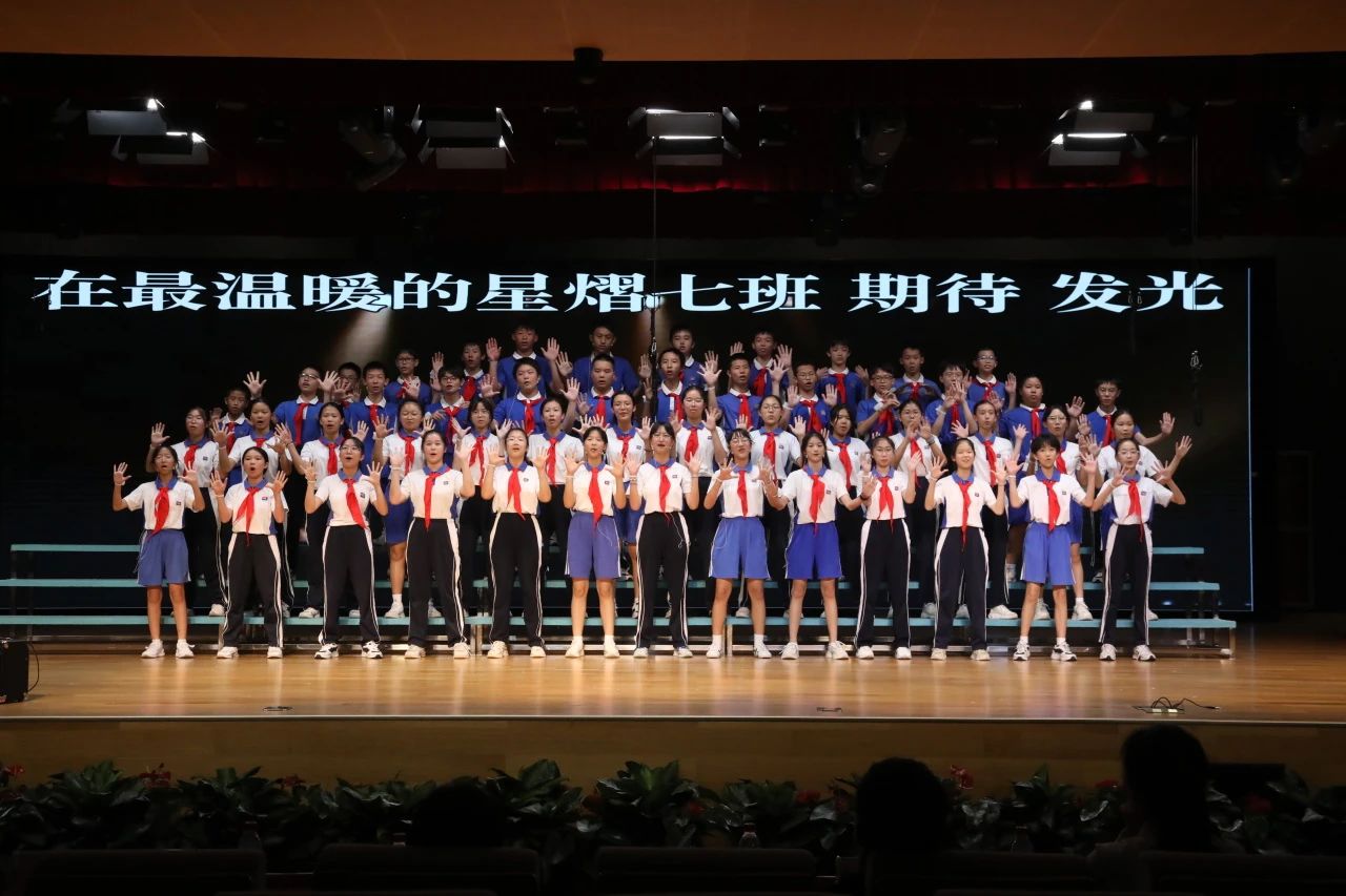当灯光渐暗,掌声未息,舞台上的身影与观众席中凝望的目光交汇成温暖的风景。这场艺术盛宴,不仅是实验学子青春风采的绽放,更是一场家校共育的深情对话——排练时,有家长默默支持的背影;候场时,有班级群里刷屏的加油祝福;舞台上,有孩子们望向观众席时眼中闪烁的自信光芒。教育从来不是独行,而是家校携手、同心共育的旅程。