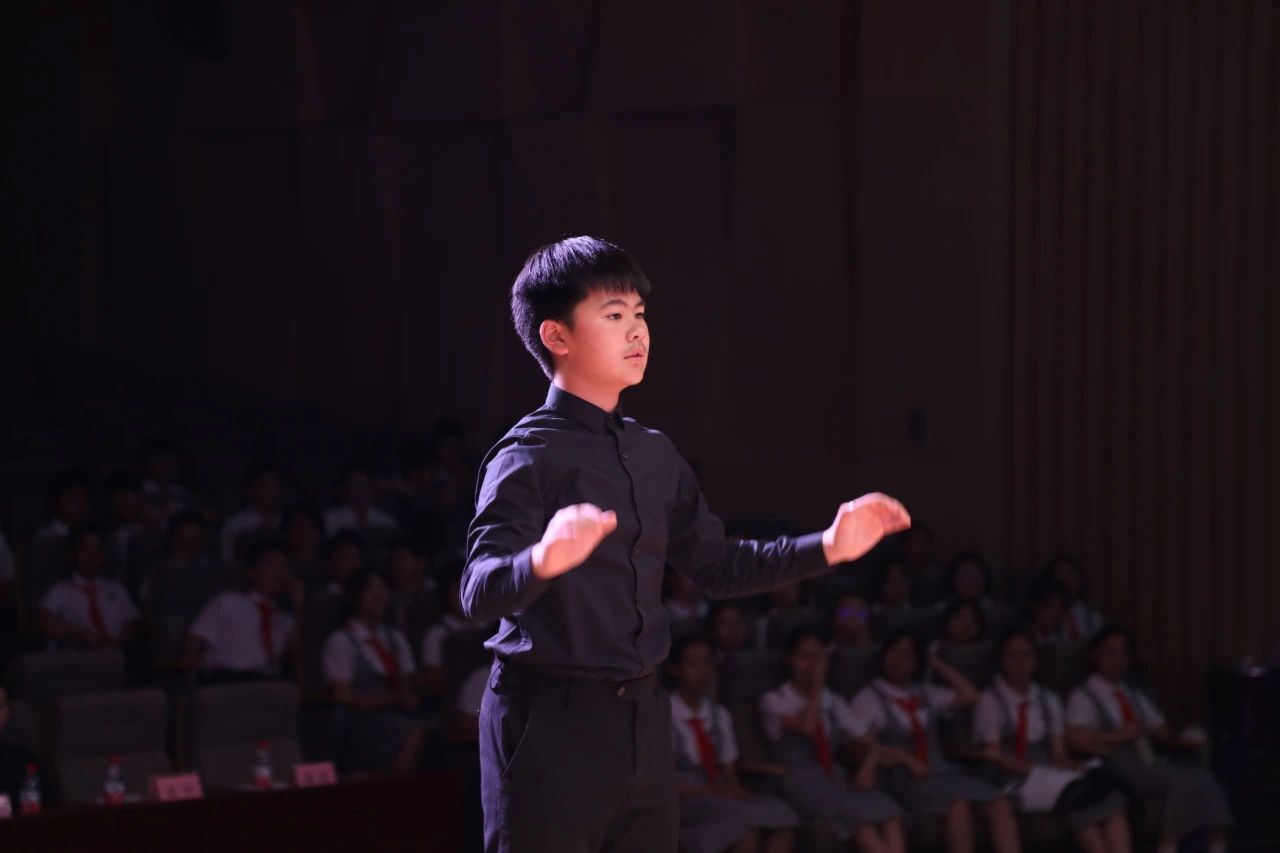 “美育一件事”,绝非一场简单的演出。自活动启动,班主任与音乐老师便精心策划:从契合班级特色的曲目选择,到融入朗诵、舞蹈的创意改编,每个细节都凝聚着师者的匠心;教室里、走廊上,课间的哼唱、午休的声部练习、清晨早到校的“加练”,甚至是晚放学后依旧亮着灯的排练室,都记录着孩子们为集体荣誉全力以赴的身影。每一节彩排课,老师们不厌其烦地调整队形,同学们彼此纠正音准,连家长义工们也悄然加入“后勤军团”——有人连夜制作道具,有人化身“舞台化妆师”为孩子们勾勒自信的笑容。当候场时的紧张化作登台前那句铿锵的“我们一定行”,当声部从杂乱到和谐、动作从生疏到默契,这场艺术实践早已超越竞赛本身:它是师生共创的成长课堂,是家校携手的温情见证,更是实验学子在倾听、协作与坚持中,让“班集体”化作照亮彼此的光芒。