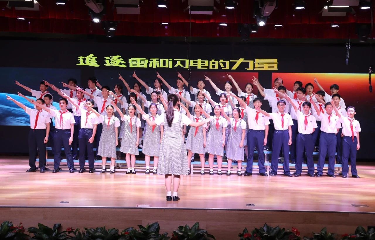 四十年栉风沐雨,学子们用歌声重温校园记忆。舞台上,学子们以多元形式诠释对母校的深情:他们将实验精神化作铿锵口号融入歌曲间奏,把《深圳实验的日子》歌词改编成班级专属的“青春日记”;用行动献礼校庆,以光影致敬岁月……从“唱一首歌”中领悟协作之美,到“登一次台”时绽放自信之美,再到“创一个作品”中雕琢匠心之美。“美育是温润心灵、涵养人格的慢艺术”,我们看到的不仅是今日舞台上的璀璨星光,更是实验学子未来人生中“认识美、热爱美、传播美”的种子正在生根发芽。