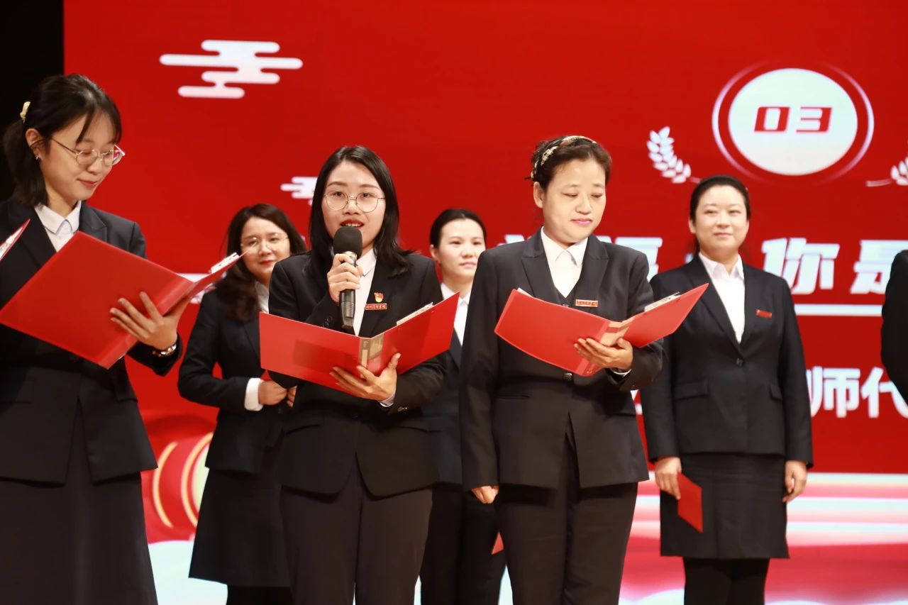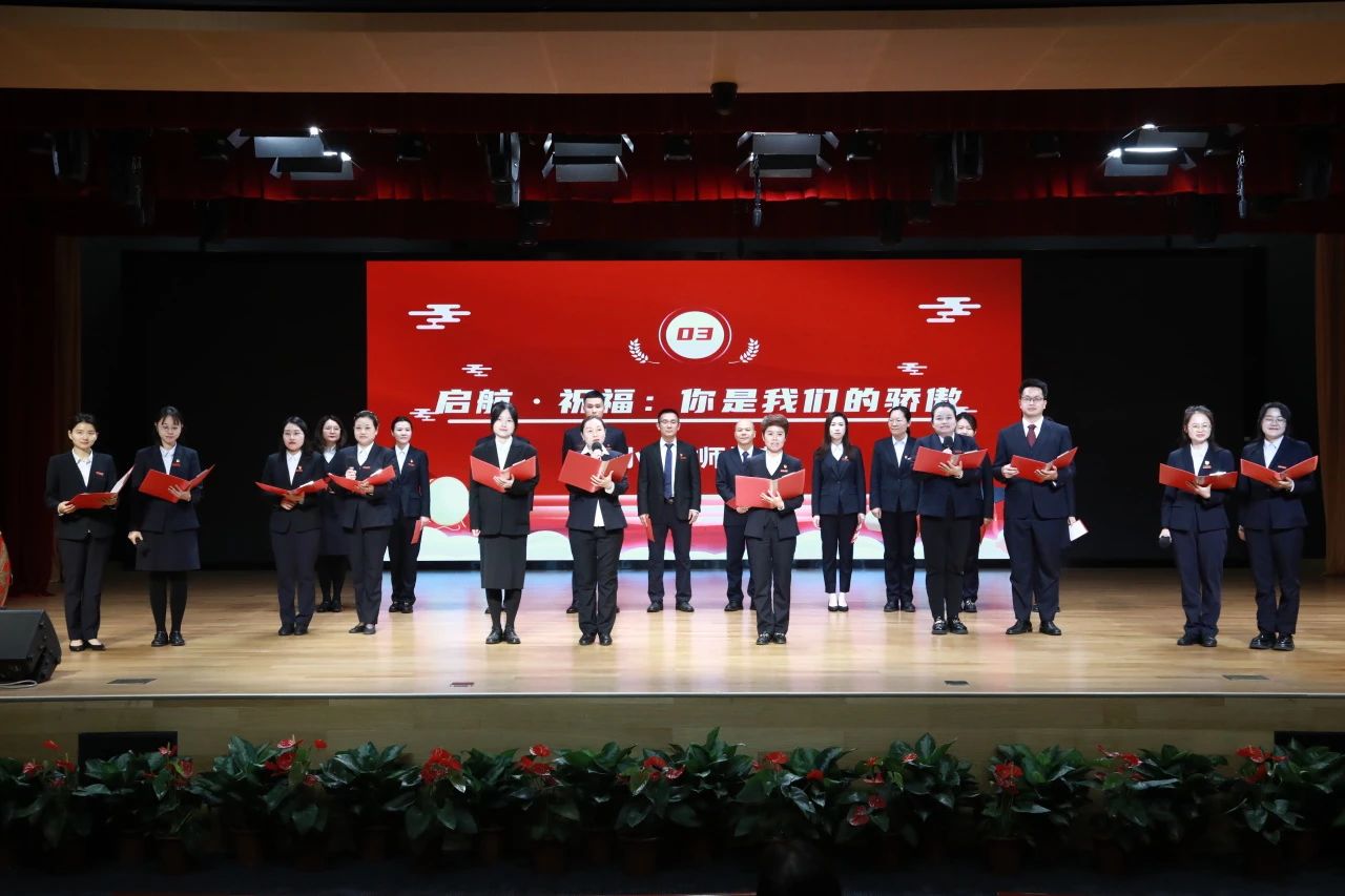 曾经教过孩子们的小初教师代表登台,用深情的朗诵回忆起与学生们共同度过的美好时光。从稚嫩的孩童成长为充满活力的少年,老师们亲眼目睹了每位学生的成长与变化。他们用诚挚的话语,表达着对学生的自豪与祝福。每一字每一句都如同春风般温暖人心,如灯塔般照亮前路,激励着学生们在中考的征途上勇敢追梦。