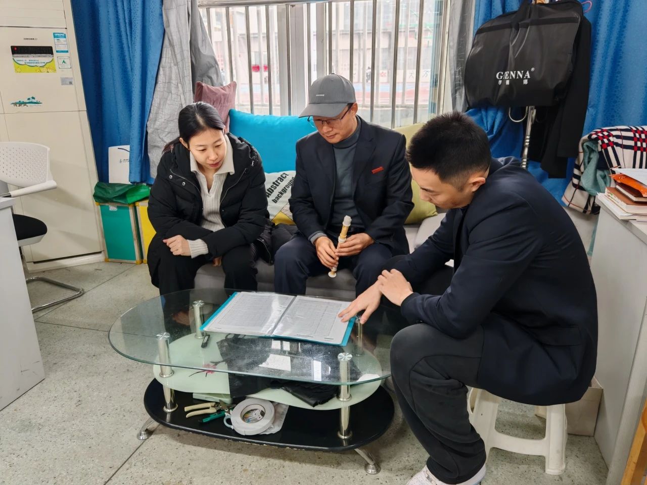 在以市直属初赛初中组第一的成绩闯进决赛后,学部、学生处领导与参赛辅导老师齐商高效排演方案。