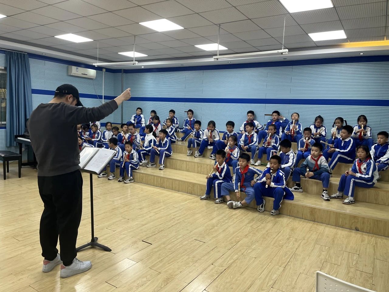 市决赛中,三(2)以精湛的竖笛演奏技艺、专业齐整的合奏、活泼灵动的舞台效果征服了现场十多位专业、基层评委和观演师生,获得市一等奖好成绩。
