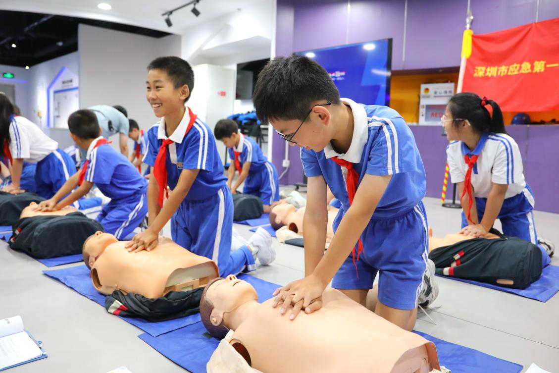 来到人工急救实操馆,基地讲解员金老师首先通过一个视频详实地给学生们介绍了心肺复苏的适用场景和操作方式,然后再给学生们进行现场教学。学有所练,金老师邀请了10名学生上前实操练习,学生们踊跃参与,现场学习氛围浓郁。
