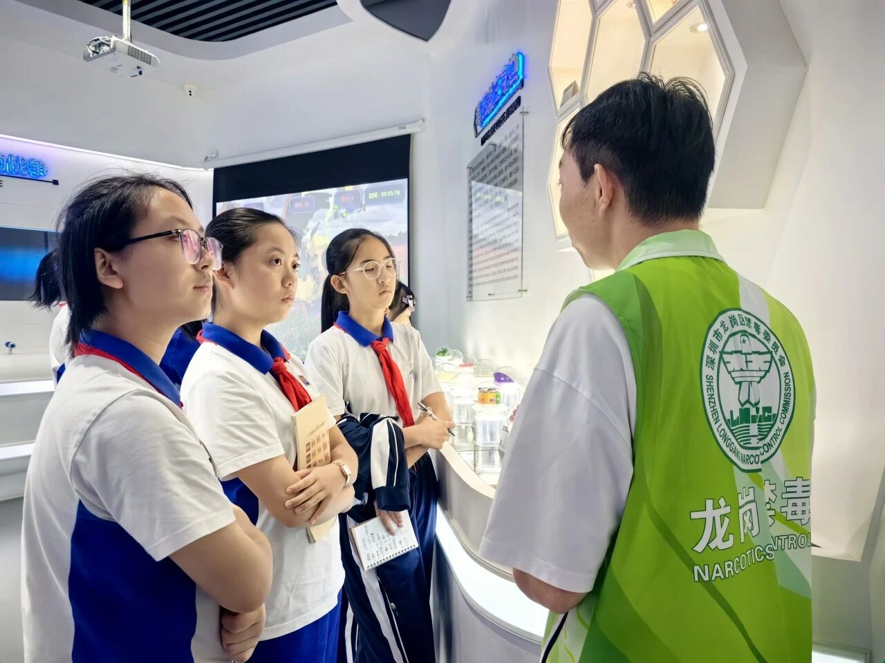 为加强青少年禁毒宣传教育,提高学生识毒、防毒、拒毒意识,近日,我校联合坂田街道禁毒委,组织少先队员代表与家长义工走进新雪社区警务室五防体验馆,开展了一场别开生面的禁毒教育实践活动。