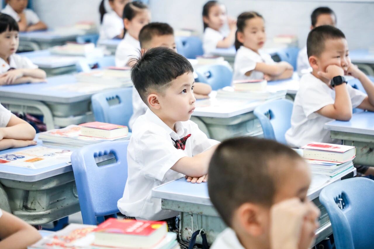 走进教室,崭新的课本整齐地摆放在课桌上,等待着孩子们去探索知识的奥秘;黑板上,老师精心绘制的卡通画让教室充满了童趣。