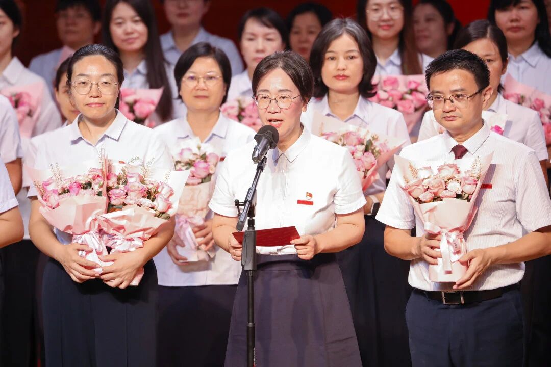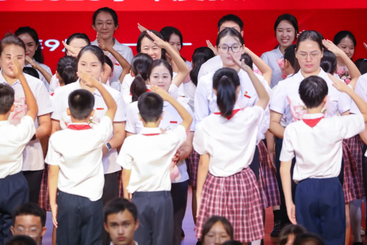 少先队代表们手捧娇艳鲜花,迈着整齐而庄重的步伐,分批次向老师们献花。那一束束鲜花,色彩斑斓,恰似学生们五彩斑斓的感恩之心。孩子们纯真的眼神、恭敬的姿态,老师们欣慰的笑容、感动的泪花,交织成一幅温馨感人的画面,将大会的氛围推向高潮。每一朵鲜花都承载着对老师辛勤付出的敬意,每一句祝福都是对教育之恩的深情诉说。