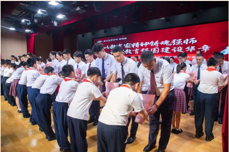 在这个特殊的日子里,深圳实验学校坂田部用一场充满温情与力量的教师节大会,展现了教育的魅力与价值。老师们,你们是教育之光,用智慧和爱心点亮学生的未来;你们是筑梦之人,用奉献和坚守为学生搭建通往梦想的桥梁。愿我们携手共进,在教育的道路上继续书写辉煌篇章!