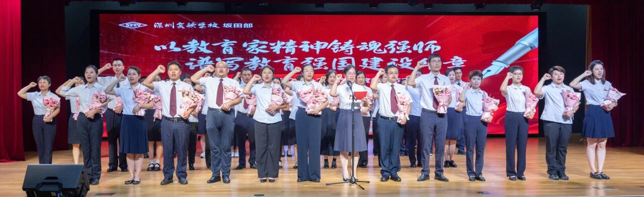 在深圳实验副校长、坂田部执行校长张楠的带领下,全体老师进行了庄严的宣誓。誓言中,教师们承诺“传承弘扬教育家精神,履行教书育人使命,为中华民族伟大复兴而奋斗”。誓言声声,掷地有声,在校园上空回荡,宛如洪钟大吕,撞击着每一位教师的心灵。这是对教育使命的庄重承诺,是对职业操守的坚定捍卫,更是以教育家精神铸魂强师的铿锵誓言,彰显出深圳实验学校坂田部教师团队的坚定信念与责任担当。