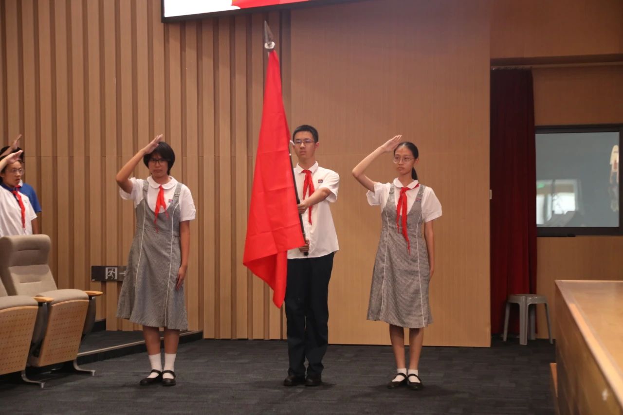 伴随着雄壮的国歌声,仪式正式开始。全体同学庄严肃立,齐唱国歌、敬礼出队旗、重温队歌,重回那段戴着红领巾的纯真岁月。
