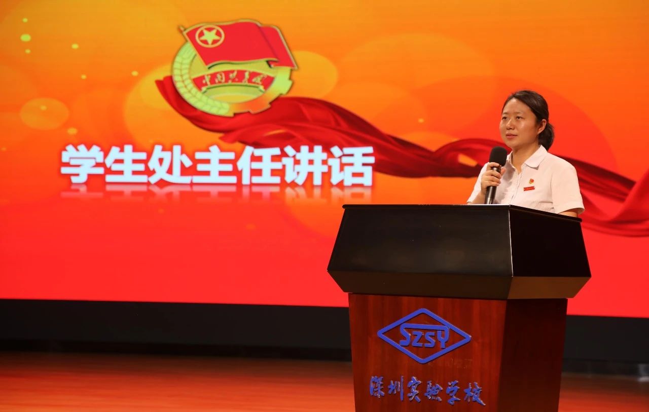 学生处刘雯主任随后发言。她首先祝贺同学们光荣加入共青团,勉励大家牢记团的使命,坚定理想信念,勇担时代责任,发扬敢为人先的精神,不“躺平”不“摆烂”,以实际行动迎接中考挑战,在奋斗中实现青春价值。希望大家永远跟党走,在新时代的征程中放飞梦想,为实现中华民族伟大复兴贡献力量。