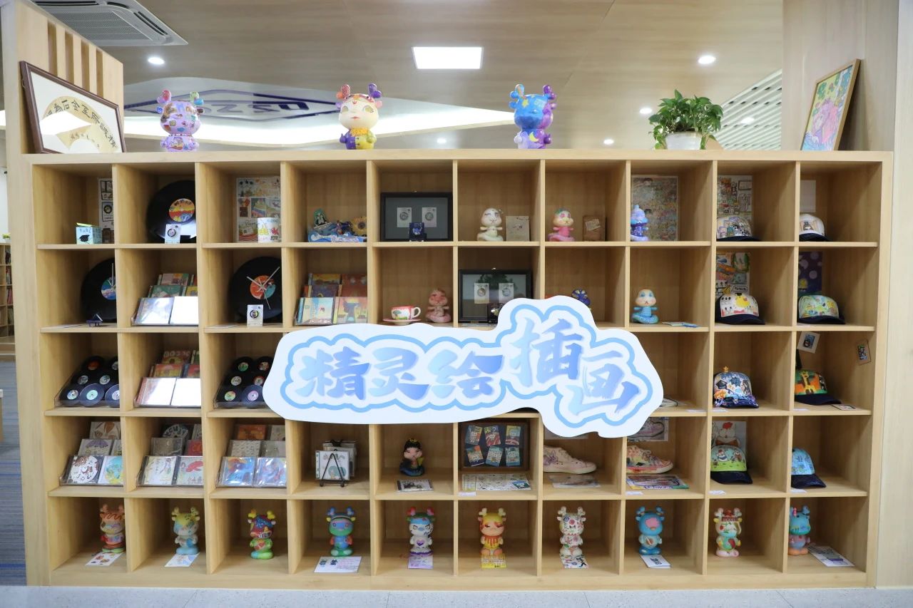 精灵插画社的成员们以笔为魔法,将集邮、动漫、音像、年历等多种题材融入创作之中,点亮了艺术的火花。本次展览不仅展出了蛇形手办、货车帽等主题涂鸦作品,还巧妙地将黑胶唱片、NFC技术、以及充满氛围感的咖啡杯等元素融入到单曲设计的场景之中。此外,通过二次创作哪吒IP,精灵插画社进一步增强了校园文化的互动性。