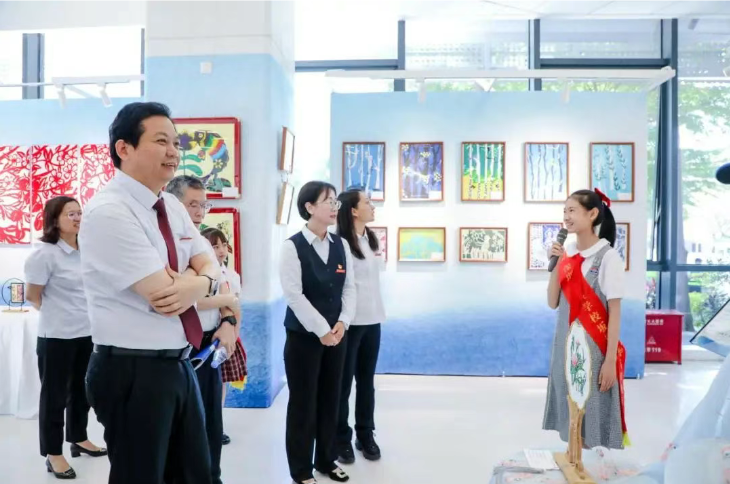 展厅内,身着校服的讲解员声音清亮、指尖轻点作品,参观者们侧耳倾听、俯身细看。在墨香与赞叹声中,实验文化正借年轻之声静静流淌。