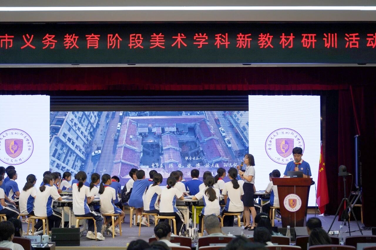 2025年9月26日,深圳市义务教育阶段美术学科新教材研训活动在香港中文大学(深圳)附属礼文学校举行。全市500余名美术教师齐聚,共同探索美术教育创新路径。我校初中部两位美术教师在《艺术·影视(含数字媒体艺术)》新科目、新教材分享会上进行了精彩展示。