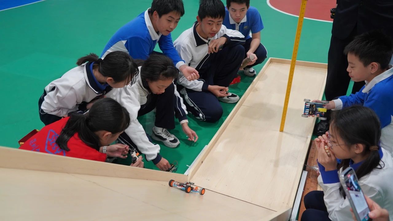 开幕式后,头奥赛的八大项目比赛陆续展开,参赛队员们带着自制作品展开了一场场激烈角逐,操场上、篮球场、图书馆,热闹非凡。