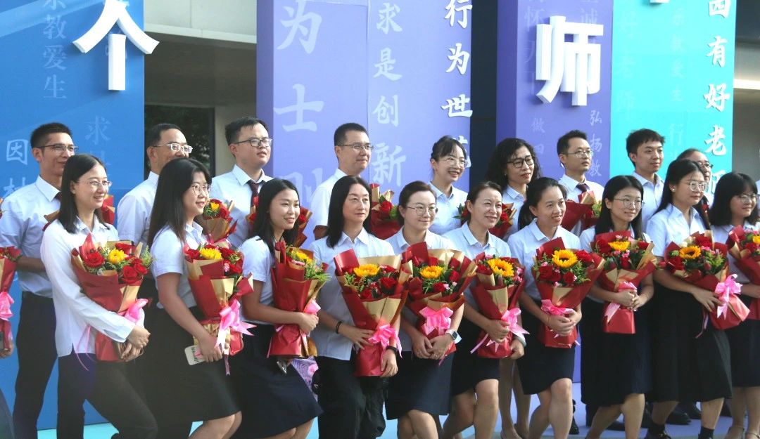 9月9日上午8:10,初中部师生齐聚小礼堂,举行了简朴而隆重的教师节庆祝大会。师生共同朗诵了由语文组高俊老师执笔、倾情撰写的诗歌《九月组歌》。浓浓实验味、深深师生情;师泽如光,微以致远;师泽若水,润物无声。