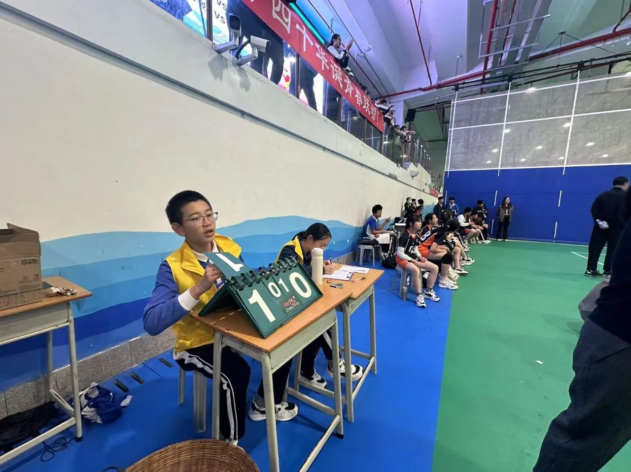 为了进一步完善和规范学生裁判工作,比赛设置了主裁判、副裁判、记录台,以及比赛直播员和解说员。初二年级体育备课组早在赛前两个月就组织了学生进行排球裁判和赛事工作的培训,以及在寒假期间布置让同学们观看排球比赛视频、学习体育比赛解说词等任务。初中部的排球赛除了是运动员的竞技舞台,更是学生参与比赛裁判和赛事工作的锻炼机会,学生从中收获满满。