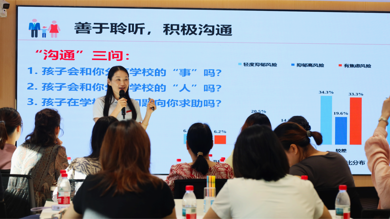 一项来自中科院心理研究所《心理健康蓝皮书》的青少年不同心理健康水平学业韧性调查吸引了家长们的眼球:乐老师通过数据让家长们觉察和分析自己的焦虑和孩子不适应背后的学业期待水平,并通过心理学期望曲线和习得性无助实验让家长们理解孩子当下的压力,调整自己对孩子的期待,从多元智能的角度正确评价孩子。