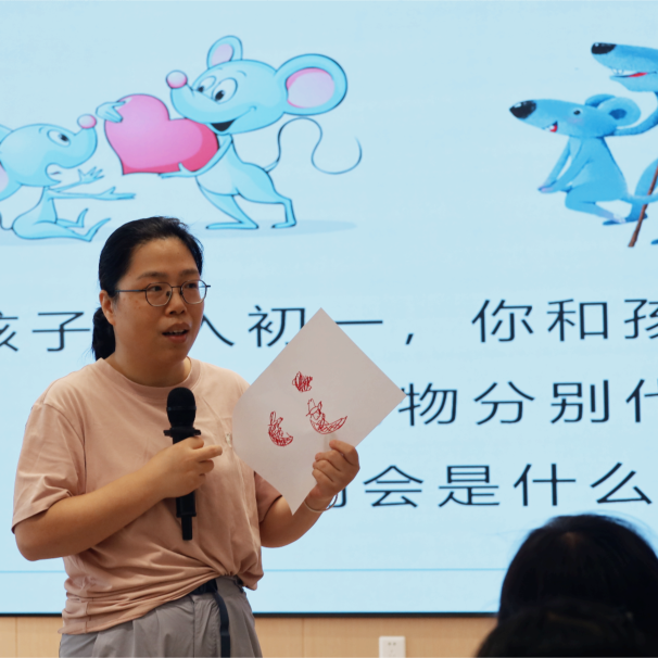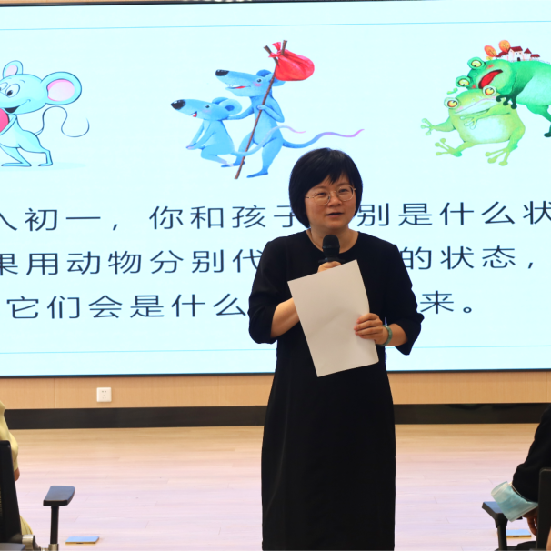 王主任在开场讲话中以多年从教经验和个人育儿心得与家长们亲切交流。小初衔接的核心是帮助孩子建立学习内驱力与心理适应力,家长如果急于用道理“纠正”孩子的“问题”,可能就无法及时“看见”孩子的真正需求。她倡议家长们用“看见”给予孩子底气,用“引领”帮助孩子找到方向!