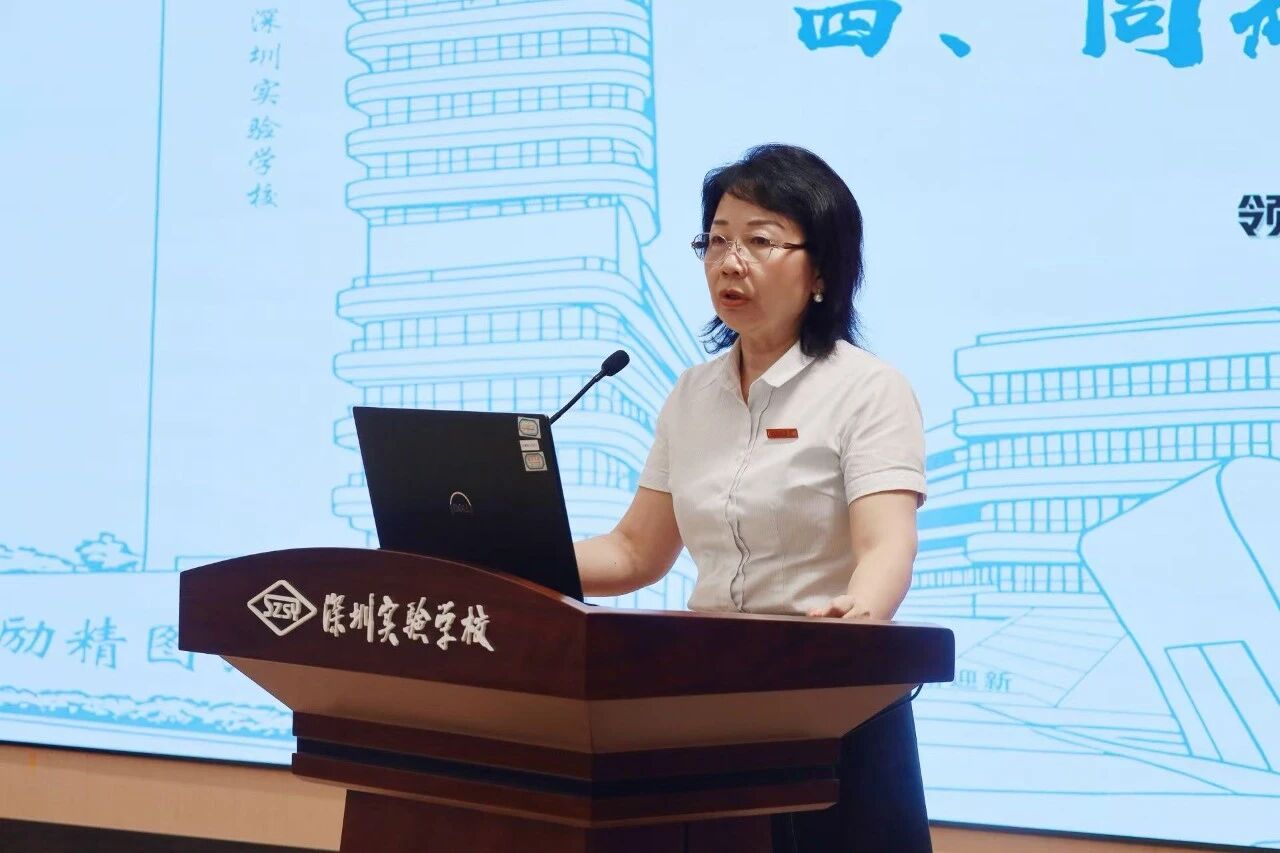 初中部李笑梅执行校长提出“一二三四”工作要求:一条主线“科学备考,精益求精”;两个指标“学业进步率和实验学校进球率”;三个阶段“定位与规划、巩固与突破、冲刺与调整”三个阶段,聚焦优秀、临界、学困、情绪波动四类学生群体;强调四大策略“数据导航、学科协同、分层增值、家校共育”,以期实现聚力融合,美美与共的工作目标。