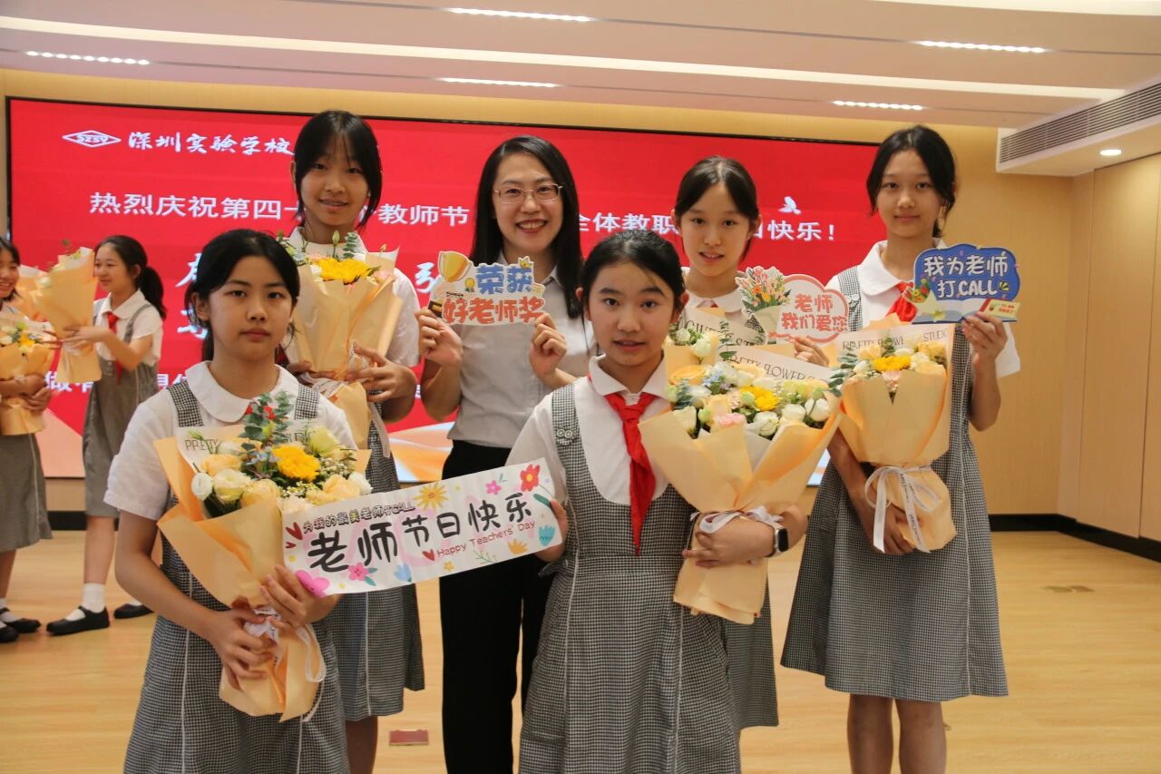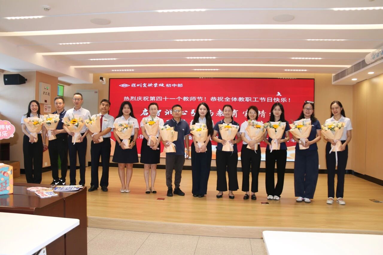 9月9日上午,初中部全体师生欢聚小礼堂,2025年教师节庆祝大会在此拉开帷幕。语文组高俊老师执笔,结合初中部师生的日常点滴,精心创作诗歌《手持人间一束光》,字里行间满是 “实验人” 的温情与坚守。何宝玉老师、洪靖宜老师与两名学生代表一同走上舞台,深情演绎诗歌 。师泽像烛,微光引航;师德若泉,滋养无形 。