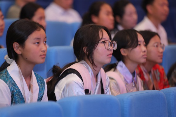 藏族学生身着盛装跳起欢快舞蹈。全体师生齐唱《爱我中华》,用行动诠释“民族团结一家亲”的深刻内涵。