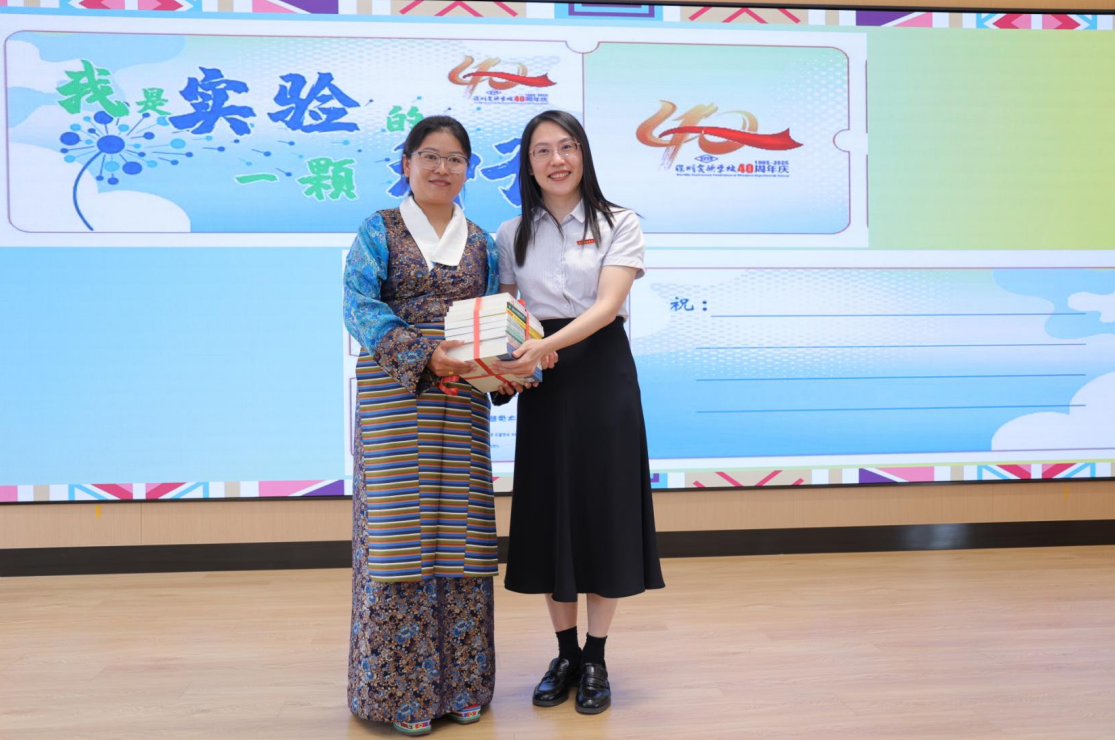 破冰环节中,两地学生通过“点名小游戏”迅速熟悉,欢声笑语不断。问答环节中,学生们对彼此生活充满好奇。礼物交换环节充满深意:深圳实验学子送出40周年特制“种子卡”及礼品,加查学生献上象征吉祥的哈达、木碗与手工艺品。加查县副县长向玲玲表示,每份礼物都承载着高原儿女的真挚祝福。