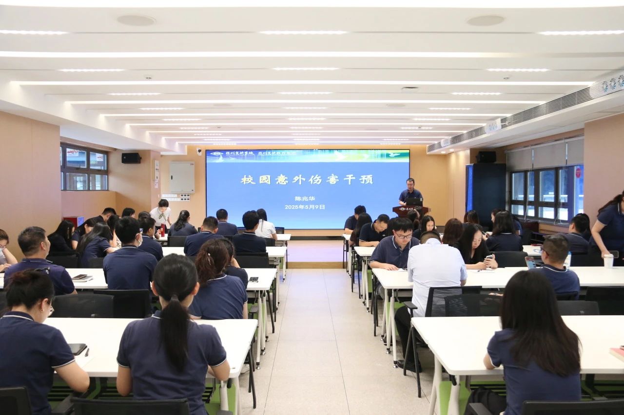 初一年级陈兆华主任、名班主任工作室主持人吴惠娟老师、心理成长中心乐燕霞老师为老师们带来精彩的分享。陈主任分享了真实案例,解析“黄金30分钟”处理流程;吴老师带来了心理危机干预的实战案例与策略;乐老师分享了“幸福关怀21天”心理支持计划。