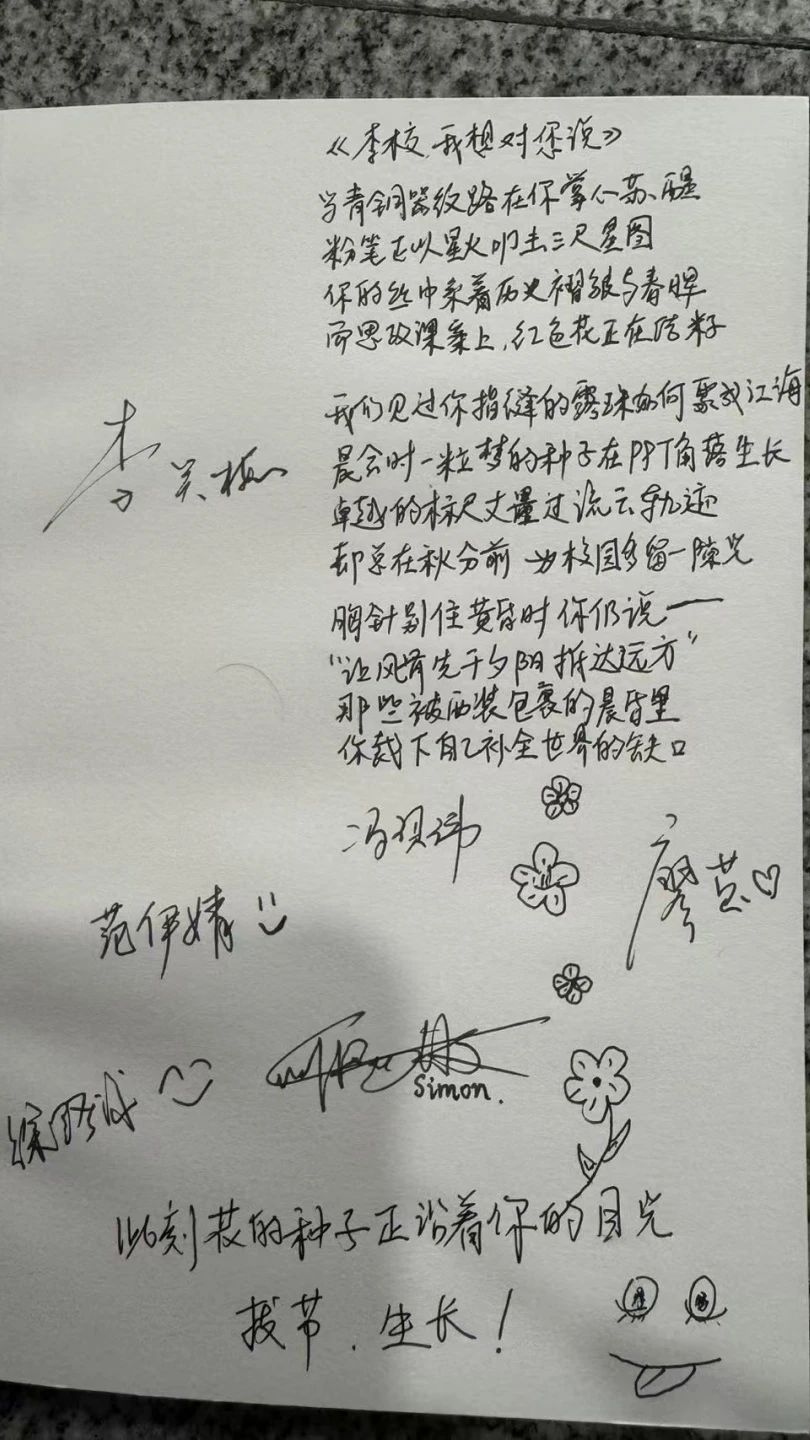 李校长寄语青年教师团队:既要永葆教育初心的定力,又要锤炼专业精进的功力,不断提升自身的教育教学水平。青年教师要在教育家精神的引领下,让专业成长行稳致远,使教育生涯进而有为,真正实现校歌中“从这里出发,走向光辉前程”的育人理想。