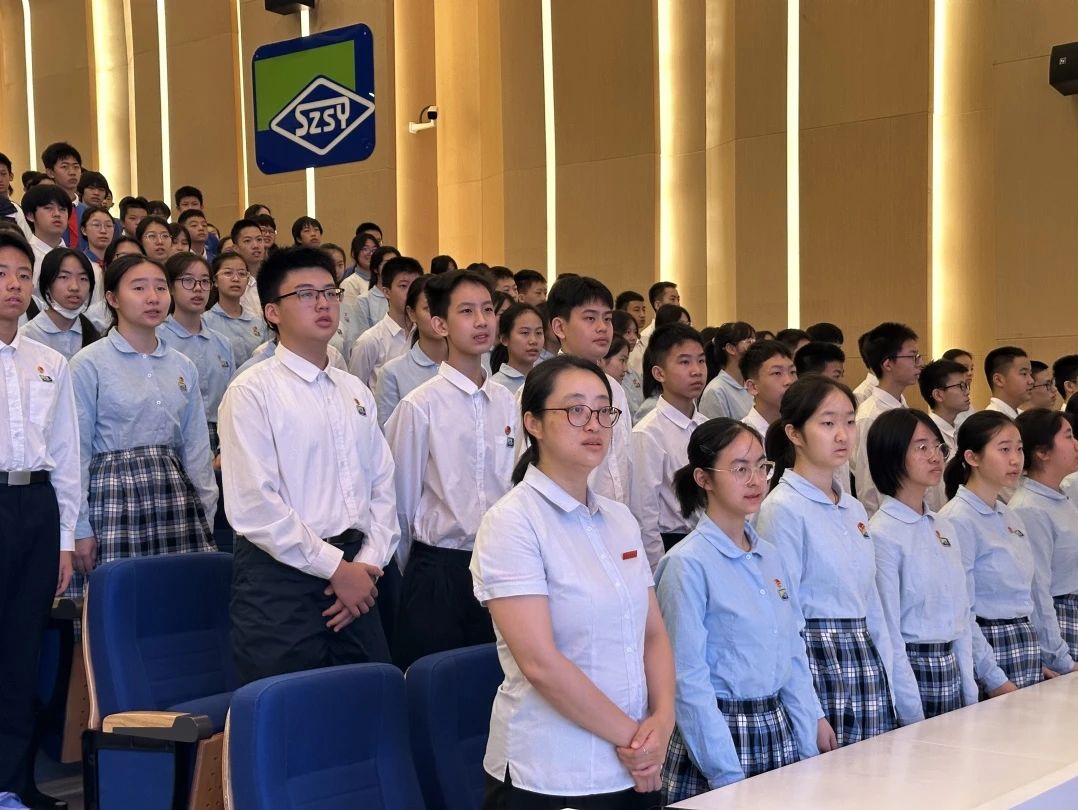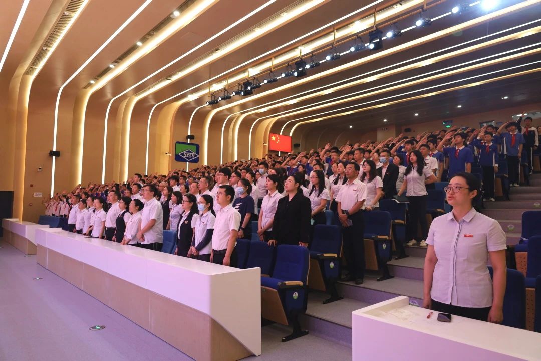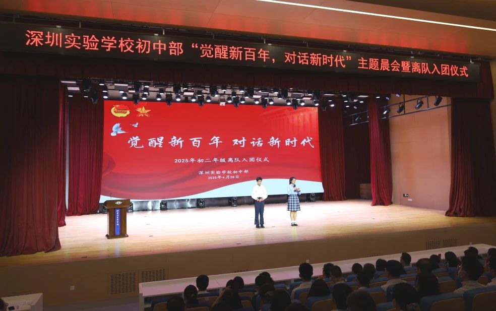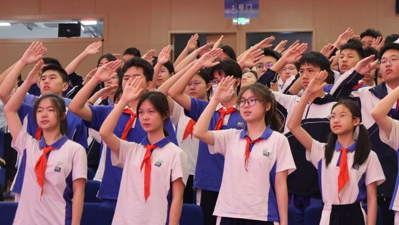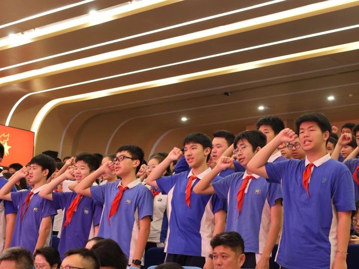 为深入学习贯彻习近平新时代中国特色社会主义思想,落实党的二十大及二十届二中、三中全会精神,深化党团队一体化育人体系,引领青少年厚植家国情怀、勇担强国使命,在“五四”青年节到来之际,初中部举行了离队入团仪式。党总支书记、执行校长李笑梅和各处室领导以及全体教师出席会议,初三共青团员、青年和初一年级少先队员全程观摩。