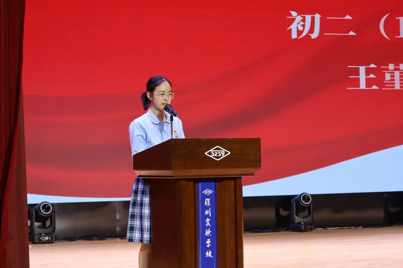 活动在雄壮的国歌声中拉开帷幕。初二(10)班王菫添同学代表少先队员发言,她分享了自己在少先队的收获与成长,言语间满是对组织的眷恋和向未来进发的豪情。她号召全体少先队员要以奋斗的姿态面向未来,积极向团组织靠拢。