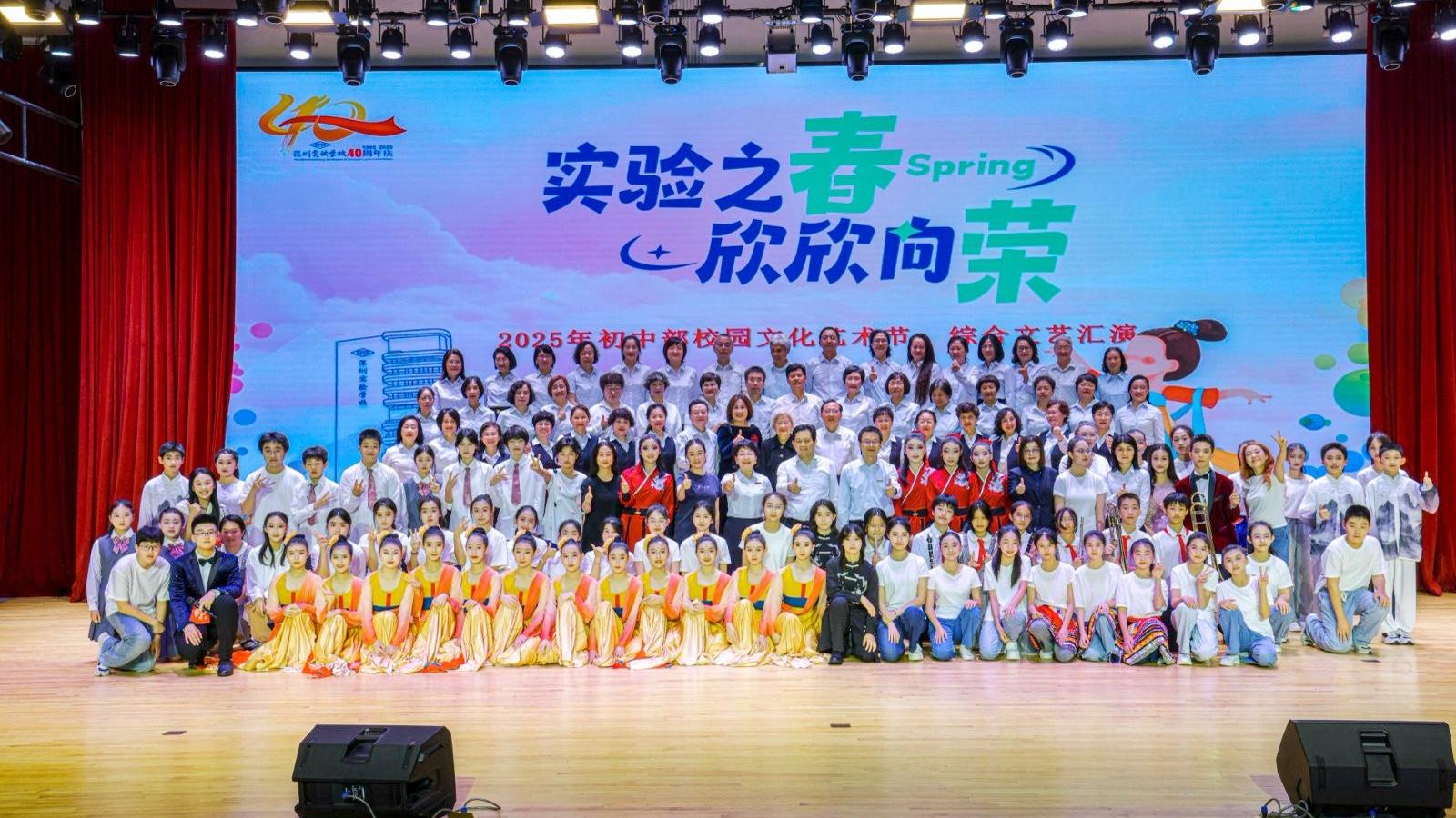 随着深圳实验学校初中部“实验之春·欣欣向荣”校园文化艺术节综合汇演的圆满落幕,我们不仅见证了一场场视觉与听觉的盛宴,更感受到了艺术教育在校园里生根发芽、茁壮成长的蓬勃生机。这场艺术节,是实验学子们对美的追求,对梦想的探索,更是对实验学校四十载春华秋实的深情献礼。让我们带着这份热爱,继续在艺术的道路上探索前行,让实验之春永远绽放着艺术的光彩,让梦想的花朵在实验的沃土上绚烂绽放。(文/学生处 图/初中部)