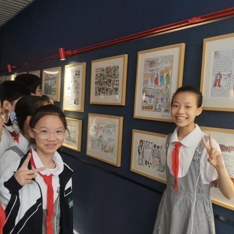 初一3班李楚妍同学表示:“创作时,我深入研究历史资料,确定主题与情感基调,精心布局每个细节,确保画面整体协调,采用丰富色彩与细腻线条,突出角色个性及场景特征,力求作品鲜活生动,传递出深刻的历史感与人物命运的悲壮美。”初一9班的杨采姗同学则认为这种形式促进她大胆融合现代流行元素,创新服饰,重构场景,让经典故事以现代生动的形式跃然纸上,让历史的智慧与文化的韵味跨越时空,与现代生活产生共鸣。