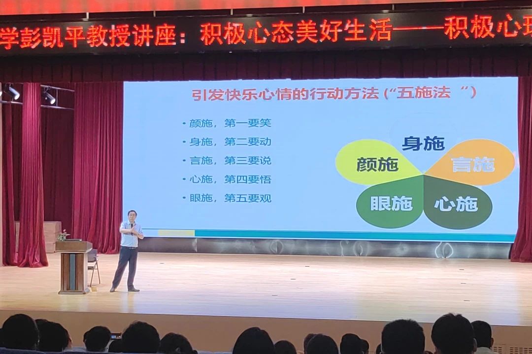 五月的报告厅,初中部的老师们还聆听了清华大学心理系彭凯平教授的讲座《活出心花怒放的人生》。老师们被彭教授风趣幽默的语言和“心花怒放”的状态所感染,并在彭教授关于“积极心理习惯”、“八正法”、“五施法”等积极心理学建议中习得应对压力和调整身心状态的有效方法与技巧。