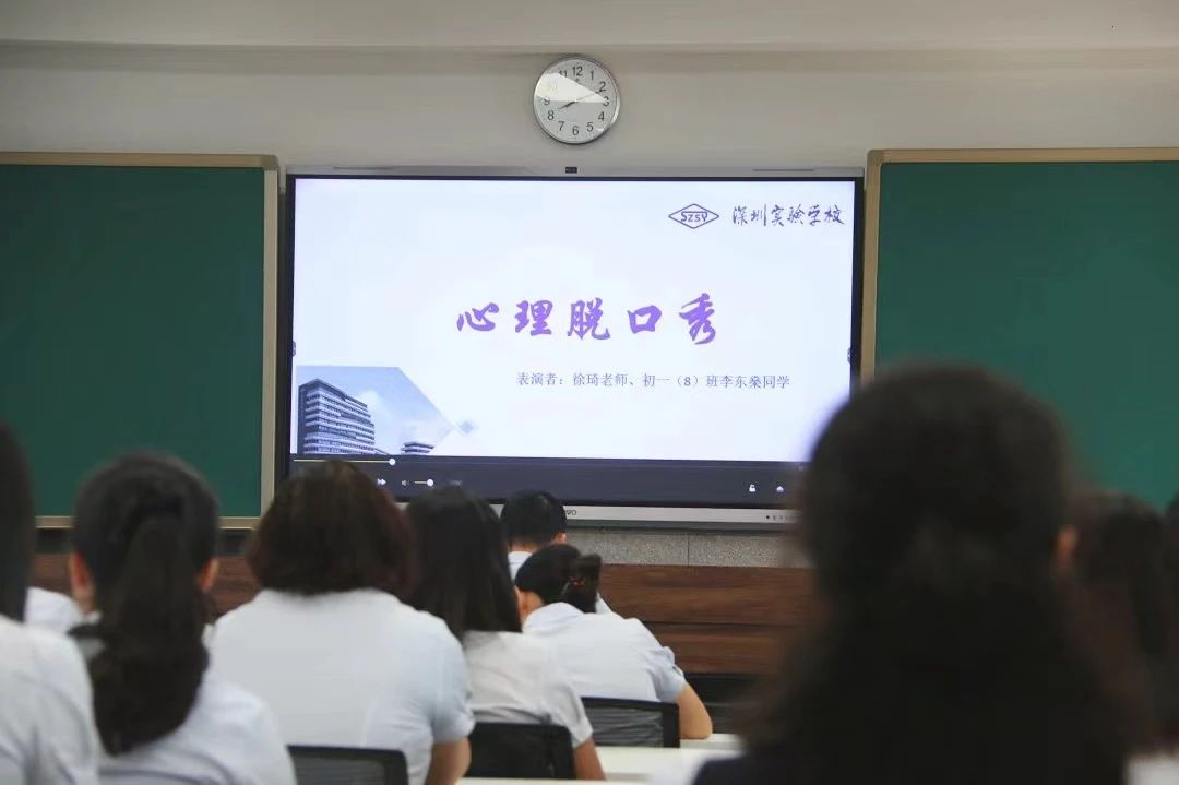 五月的第一个晨会,美术科组徐琦老师和初一(8)班李东燊同学为全校师生带来了一场既诙谐幽默又具有积极意义的心理脱口秀表演。心理脱口秀聚焦当今中学生“内卷与躺平”的焦虑和迷茫状态,引导同学们专注当下,学会自我调整和善于求助,帮助自己找到平衡点。