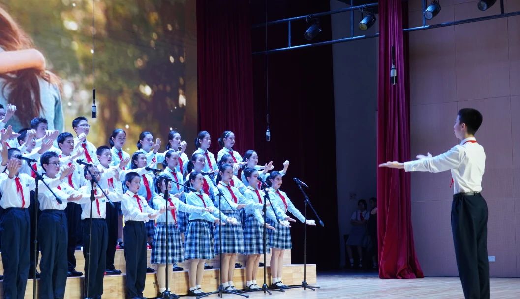 以美润心,为每一个学生搭建舞台,爱唱歌的学生们如盛开的花、如绚丽的光,站在舞台上,青春滚烫,自信飞扬。
