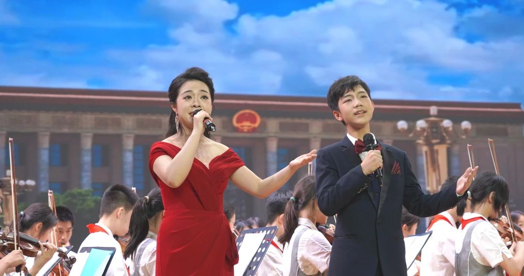歌声起,溢心扉,携手向前,共创辉煌,共绘祖国新蓝图,管弦乐团颂华章。