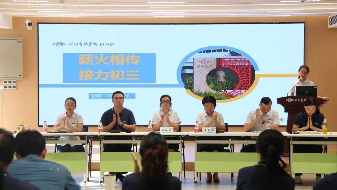 金秋十月,风霜高洁,正值收获季节。9月26日下午,深圳实验学校初中部举办了新老初三教师交流会,总结经验、传授心得、展望未来。会议由教务处副主任彭伟琼主持,教务处主任邰士剑、学生处主任徐枫、初中部执行校长李笑梅,以及深圳实验教育集团教育教学部主任胡晓江出席了会议。本次会议分为四个环节:学业成果分析、经验传承、新初三展望和领导讲话。