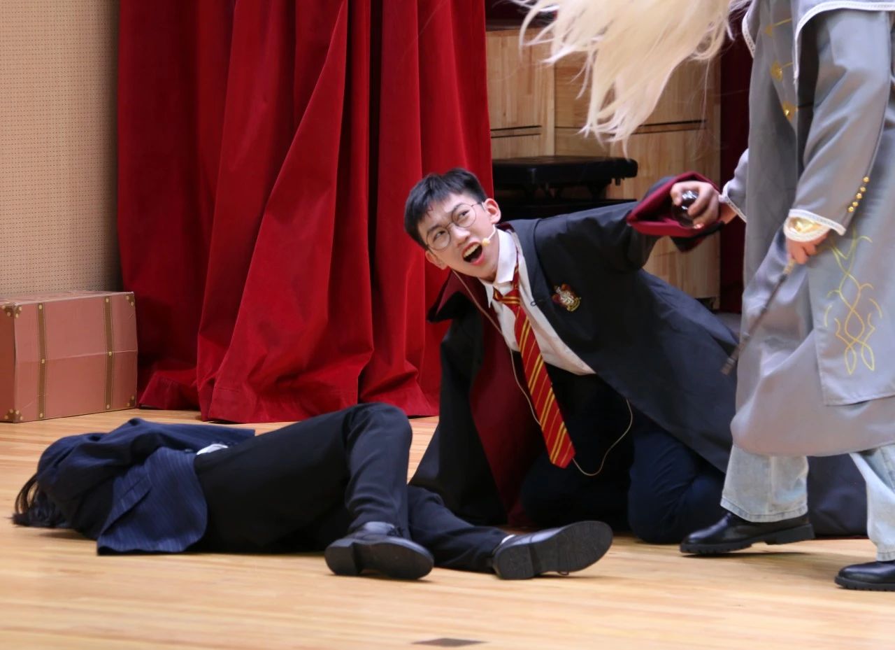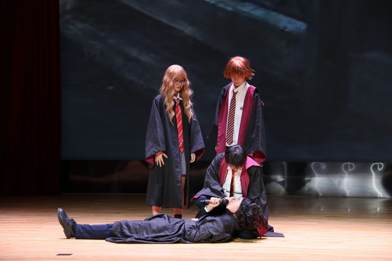 最后,初二(9)、(10)班组生动演绎了从《哈利波特与混血王子》到《死亡圣器》。魔药课上,哈利使用斯内普的旧魔药课本,理解了魂器;临终前,斯内普将自己的记忆给了哈利。同学们动情的表演,让我们了解到最真实的斯内普。斯内普最经典的台词,仅是一个“Always”。他对莉莉一生的坚持与守护,为展演活动画上圆满的句号。