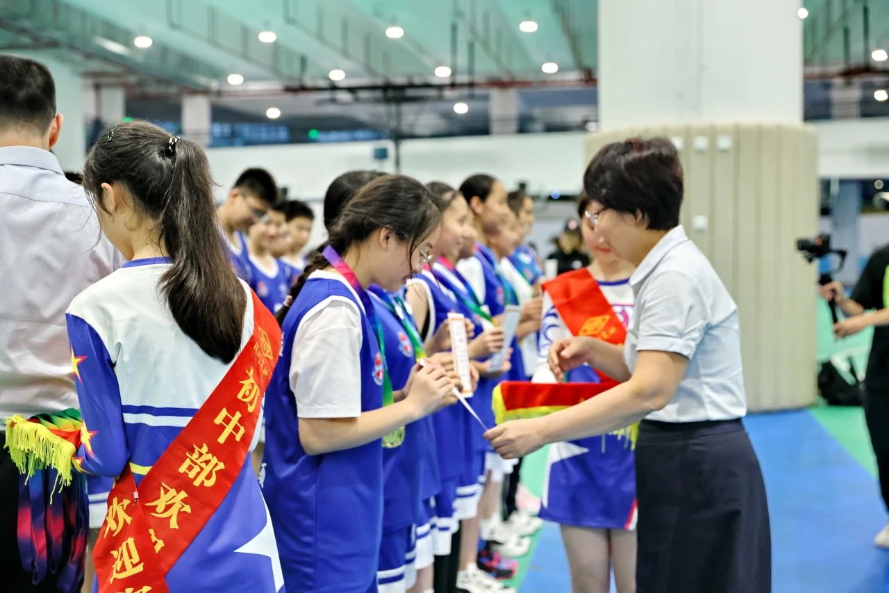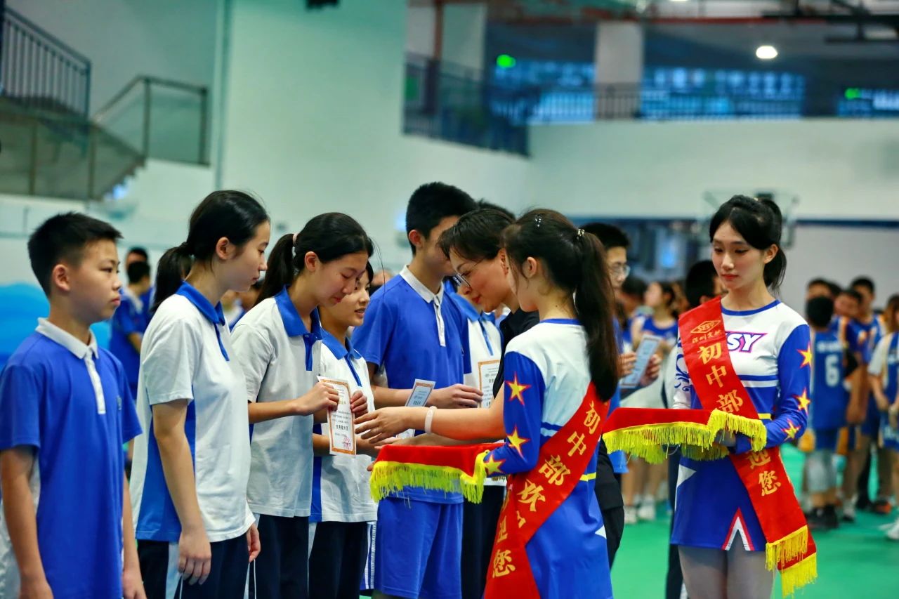 初中部为本次比赛获奖班级和个人举行隆重的颁奖仪式,让参赛同学感受比赛的成功喜悦和体育赛事的高光时刻。颁奖仪式上,初中部海豚啦啦操队的表演让现场气氛热烈激昂,充满青春气息。