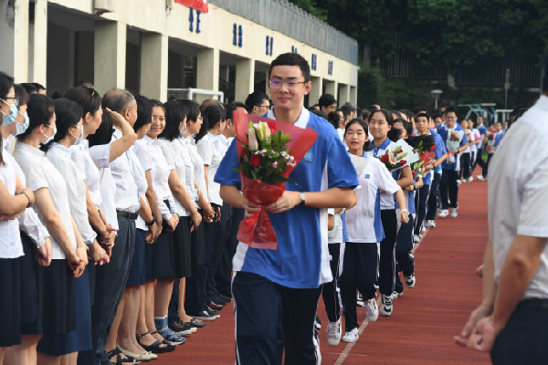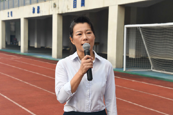 典礼第一项是庄严的升旗仪式,全场师生高唱国歌,接着深圳市2020年度教师徐怡华老师发表感言。徐老师以“生命教育”为题讲述了她对教师职业的理解。她认为教育的真谛是用良知唤醒良知,用人格塑造人格,用生命影响生命!33年来,她向一届又一届学生传递开拓进取的特区精神和励精图治的实验校训,收获无数声“华姐,你辛苦了”。华姐,是老师,亦是大姐;是朋友、更是导师。从徐怡华老师的发言中,我们似乎看到了一代代实验教师孕育青苗,孜孜不倦的教育担当。