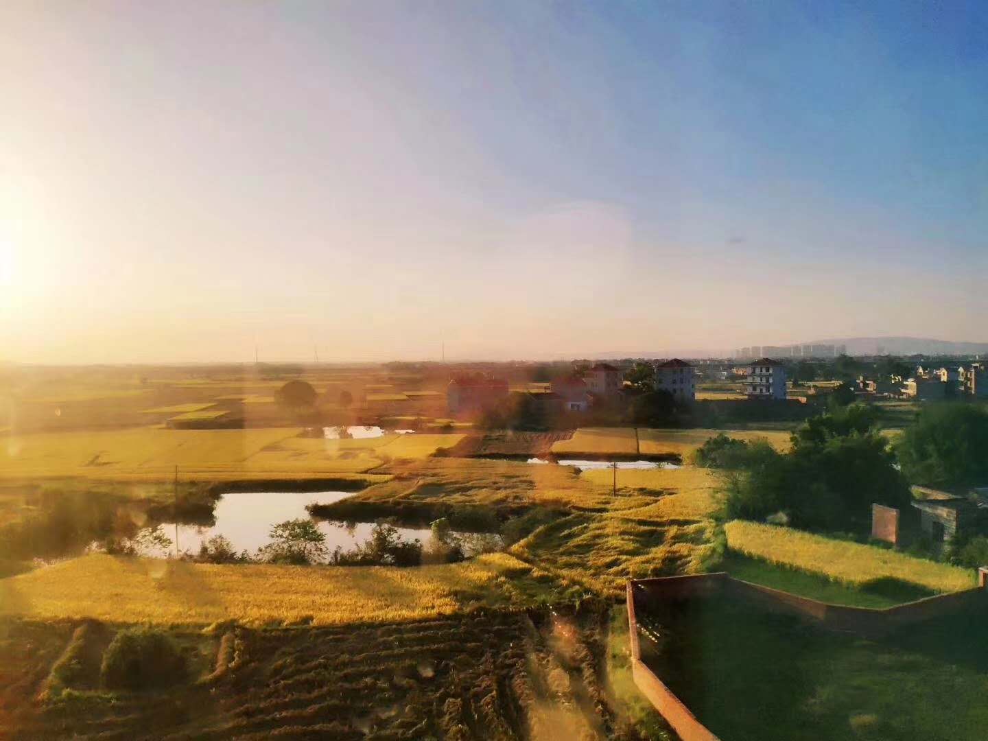 在火车的晃荡声中,城市的高楼大厦向后逝去,江西的农田映入眼帘。晚稻的金黄、连绵的群山、错落的村庄扑面而来,诱起了我们对乡村的向往……