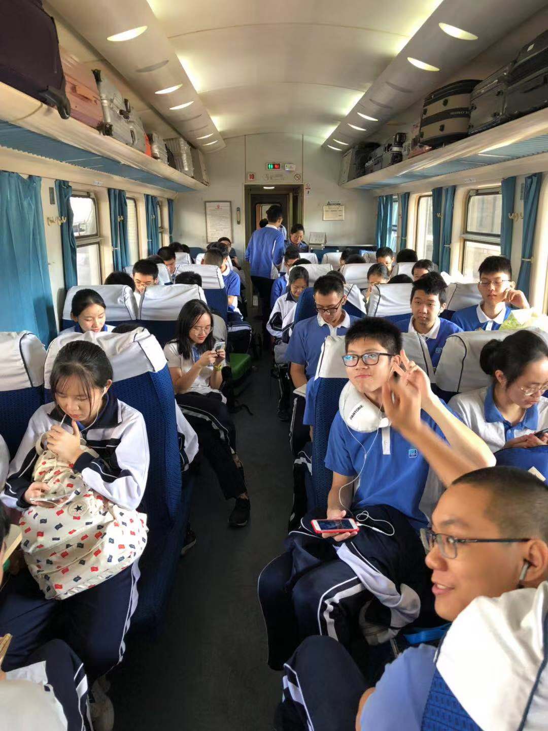 此行井冈山社会实践活动,在摇晃的火车上开始。深圳的初阳浸染着绿色车厢,铁轨斑驳了行车时晃荡的声响。车厢里,校服的白蓝色和青春的笑声让一路来的旅客感受到了实验学生精神面貌。列车开动的那一刻,车厢里些许的混乱喧嚣似乎在瞬间一滞,发亮的眼睛默默地向窗外望去,看向缓缓后移的站台。随即车厢里的空气再次沸腾,一边是大声吐槽火车感人的速度,一边是高喊出那句“我也喜欢出发”。