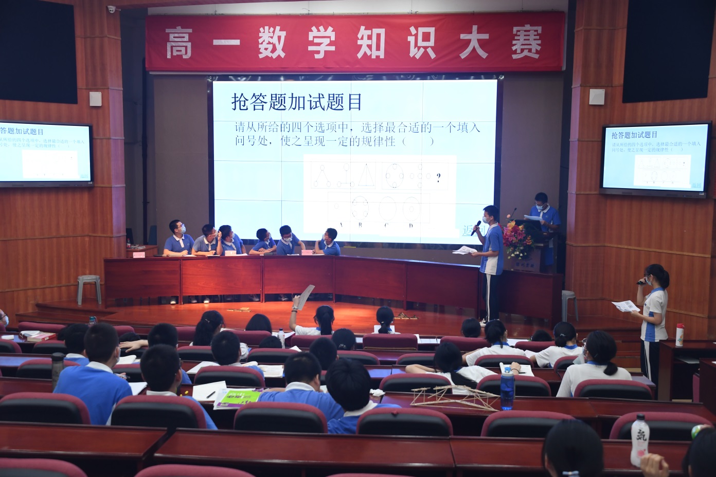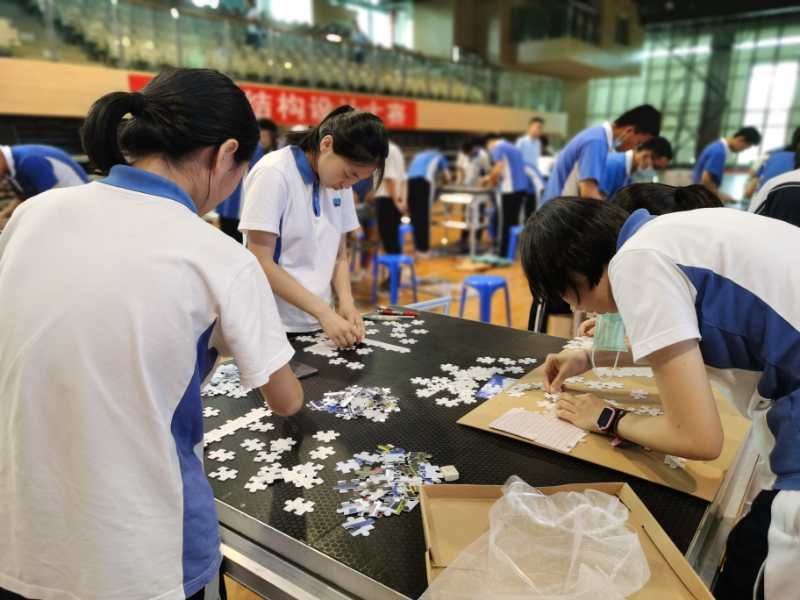 高二数学拼图大赛,各班参赛团队通力合作,完成拼图作品。高一数学知识大赛分为抢答、笔试两个环节进行,选手们思维活跃、沉着冷静。这次活动是数学学科趣味性和实用性的完美体现,是思维与实践、学习与生活的完美融合,是数学文化魅力的完美展示。