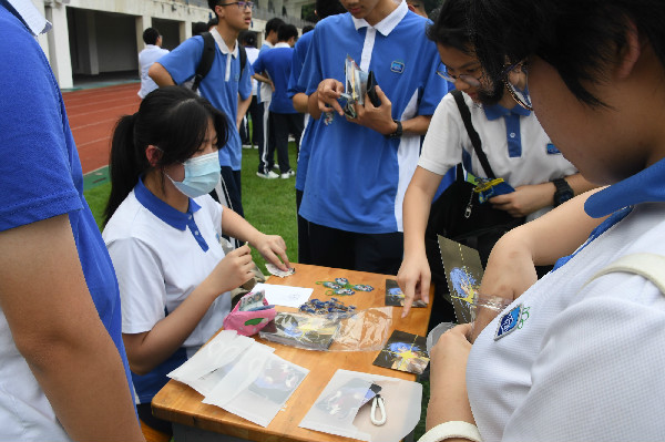 书签、明信片、“登机牌”:美好的短瞬被雕刻成永恒,愿未来对其的偶然一瞥,能成为投向回忆之湖的石子。卡套、立牌、钥匙扣:装饰虽小,趣味不减,将每天平凡生活的黑白涂抹成斑斓的五彩。“云销雨霁”,少年们才华横溢,于社刊激扬文字、挥斥方遒,书写青春之你我。“壹零”杂志不改初心,记录当代新青年有趣的灵魂,老师采访、足球特刊、社团联动,展现实验人与众不同的生活风貌。