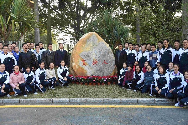 2018年12月17日上午10:00,深圳实验学校高中部校举行了新校牌揭牌仪式,仪式隆重而简朴。程学军部主任、田祚鹏副部主任、杨文艳副部主任带领中层干部及各年级、处室的老师们参加了揭牌仪式。