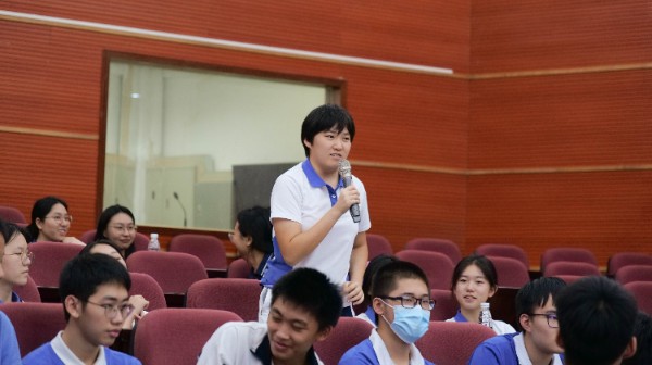 这是一次难得的与经验丰富的学者探讨问题的机会,在交流互动环节,大家十分踊跃,有同学询问了如何使用电脑进行数学分析与计算,也有同学提出手机设计与物理的相关性,还有同学思考怎么排除空气阻力对实验的影响等问题,教授一一作了回答,并提出在大学可以学习跨学科知识,以便将物理与其他更好结合,去发现更多可能性,鼓励同学们多去探索与思考。
