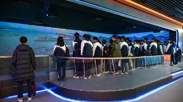 想要了解前海,最好从前海展示厅开始,因为前海展示厅见证前海的发展,伴随前海的成长。高中部团员们从主入口进入展示厅,通过全息投影的方式观看并聆听习近平总书记对前海发展的寄语。在沙盘展示区,团员们观看了气势磅礴的前海规划理念及未来城市风貌影片,沙盘与影片的解说词会同步配合亮灯,展示了前海的交通规划、前海水廊道及区域规划,生动地体现了前海作为国家战略区域的重要地位和发展潜力。